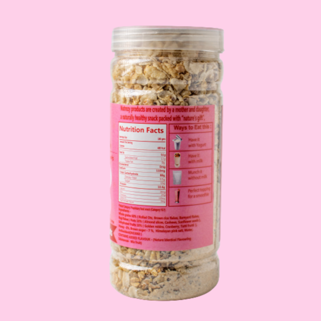 Breakfast cereal made up of Jowar, Bajra & Nachni Flakes. Contains fruits, nuts and seeds.