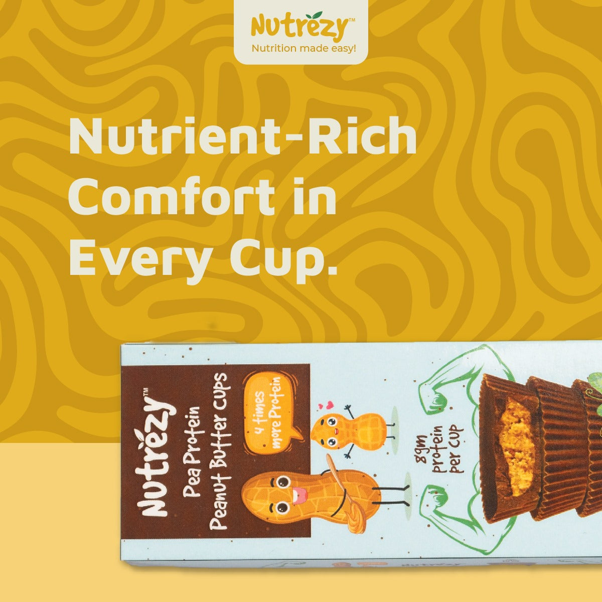 Our Vegan Protein Peanut butter cups contain 8 grams protein per cup.These are made up of pure organic peanut butter, premium dark chocolate and plant protein. These bite sized protein cups are your perfect guilt free binge!